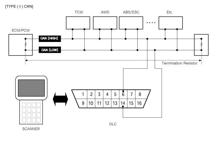 Service Mode (Upgrade, Writing VIN) : 500 or 1Mbps)